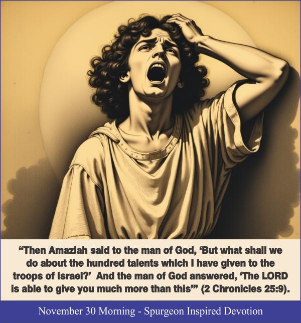 “Then Amaziah said to the man of God, ‘But what shall we do about the hundred talents which I have given to the troops of Israel?’ And the man of God answered, ‘The LORD is able to give you much more than this’” (2 Chronicles 25:9).