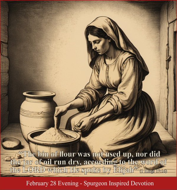 “The bin of flour was not used up, nor did the jar of oil run dry, according to the word of the LORD which He spoke by Elijah” (1 Kings 17:16)