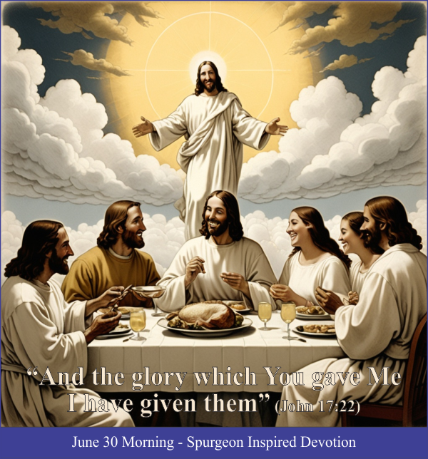 Christ gives His saints the glory the Father gives to Him. Even a tenth would have been generous, but He gives it all. Like the Syrophoenician woman, we would have been content with “the crumbs which fall from their masters' table” (Matthew 15:21), but He has us sit with Him at the feast. He wants His bride to be as rich as Himself, and there isn’t a glory or a grace which He doesn’t share.