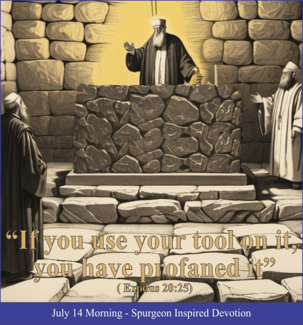 God's altar was to be built of natural stones, so no trace of human skill or labor would be seen in it. Human wisdom delights to trim and arrange the doctrines of the cross into a system more appealing to the self-help inclinations of fallen man; instead of improving the gospel, carnal wisdom pollutes it, until it becomes “another gospel,” and not the truth of God at all.