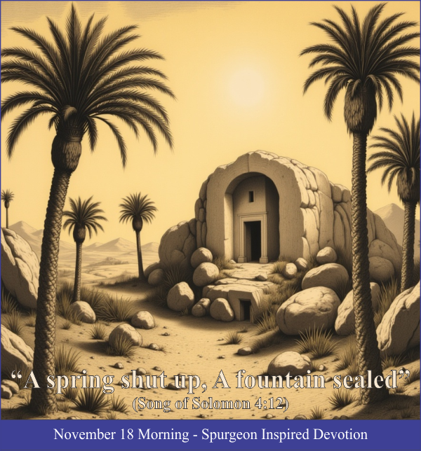 A spring shut up implies secrecy. God often shows the saint what’s in his heart by trials, but there’s a less painful way. If you ask God to illuminate your understanding while reading His Word, He can sometimes show you the secret motives of your heart without a trial. “The Word of God is living and powerful, and sharper than any two-edged sword, piercing even to the division of soul and spirit, and of joints and marrow, and is a discerner of the thoughts and intents of the heart” (Hebrews 4:12).