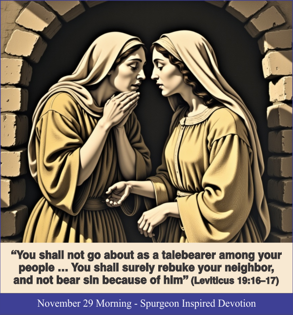 “You shall not go about as a talebearer among your people … You shall surely rebuke your neighbor, and not bear sin because of him” (Leviticus 19:16–17).