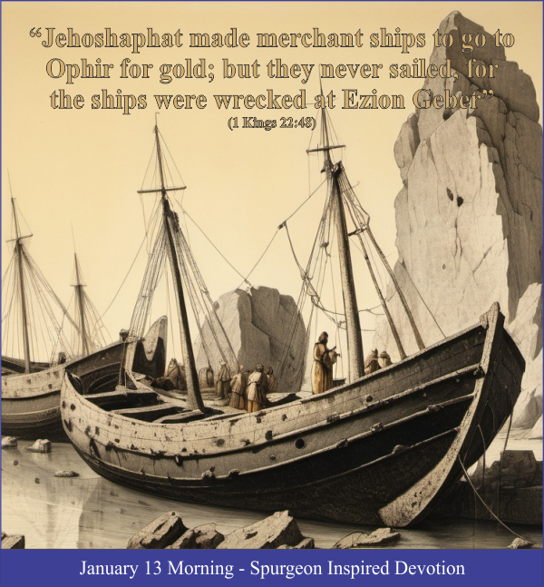 “Jehoshaphat made merchant ships to go to Ophir for gold; but they never sailed, for the ships were wrecked at Ezion Geber” (1 Kings 22:48)
