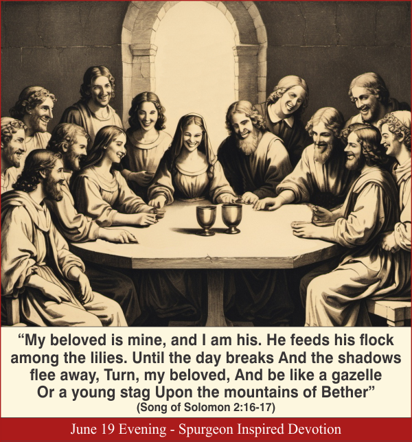 “My beloved is mine, and I am his. He feeds his flock among the lilies. Until the day breaks And the shadows flee away, Turn, my beloved, And be like a gazelle Or a young stag Upon the mountains of Bether” (Song of Solomon 2:16-17).