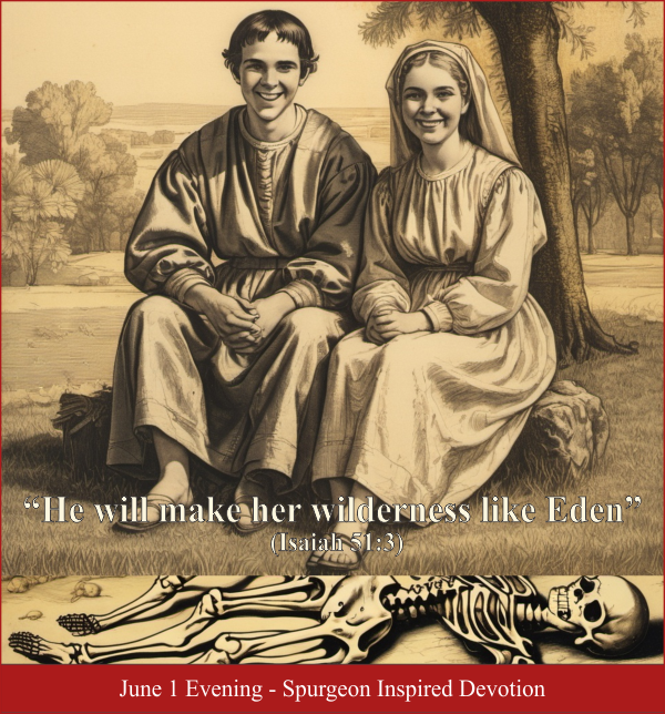 I imagine a howling wilderness, a desert stretching for miles in every direction. The sand is strewn with thousands of bleached skeletons, the remains of wretched men who died in the baren waste, without hope. What an appalling sight! A cheerless graveyard for a forsaken race! But look! A Savior comes forth. He transforms the wilderness into a Garden and raises the dead to life, a mighty army! “Thus says the Lord God to these bones: "Surely I will cause breath to enter into you, and you shall live … and breath came into them, and they lived, and stood upon their feet, an exceedingly great army” (Ezekiel 37:5-10).