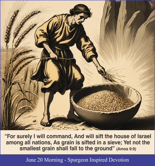 Everything that happens is either caused or allowed by God. Satan had to ask God’s permission before he could do anything to Job. For saints, in some sense, our siftings are directly the work of heaven, for the text says, “I will sift the house of Israel”. Satan would prefer to sift in a way that would destroy God’s people; but the overruling hand of the Master makes sure the refining of the grain doesn’t destroy it. Oh saints, take comfort in the fact that because your Lord directs the sifting, “not the smallest grain shall fall to the ground”.