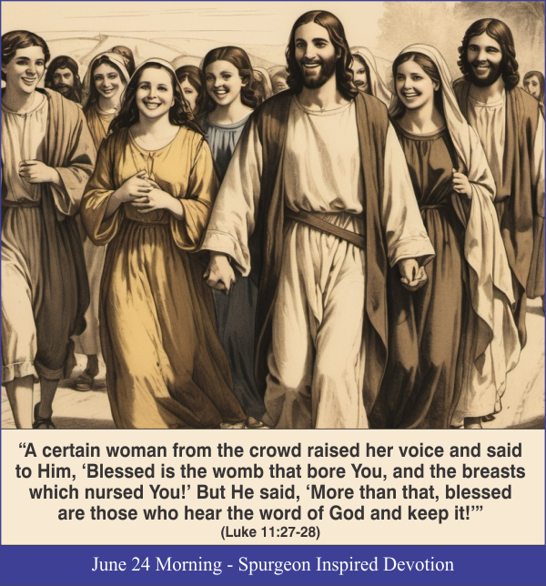 “A certain woman from the crowd raised her voice and said to Him, ‘Blessed is the womb that bore You, and the breasts which nursed You!’ But He said, ‘More than that, blessed are those who hear the word of God and keep it!’” (Luke 11:27-28)